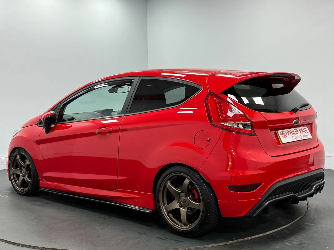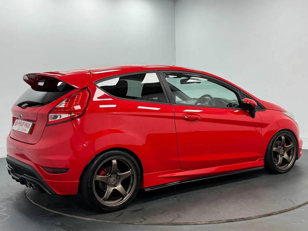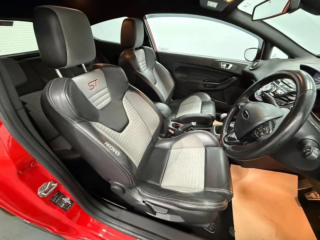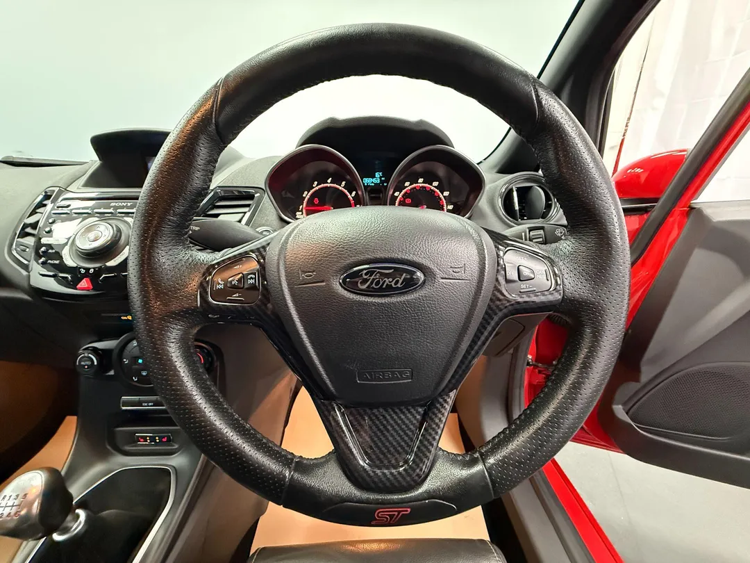 This 2014 Ford Fiesta ST-3 boasts exceptionally low mileage for its age, having covered just 68,453 miles. This particular ST-3 model is equipped with a responsive 1.6L petrol engine, offering an exhilarating 0-62mph acceleration time of just 6.9 seconds. Convenience is enhanced with the Ford Keyfree System, allowing for keyless entry and starting with the Ford Power Starter Button. Inside, you'll find heated driver and passenger seats for added comfort, alongside Electronic Automatic Temperature Control for effortless climate management. The vehicle also features automatic headlights, which switch on when needed.