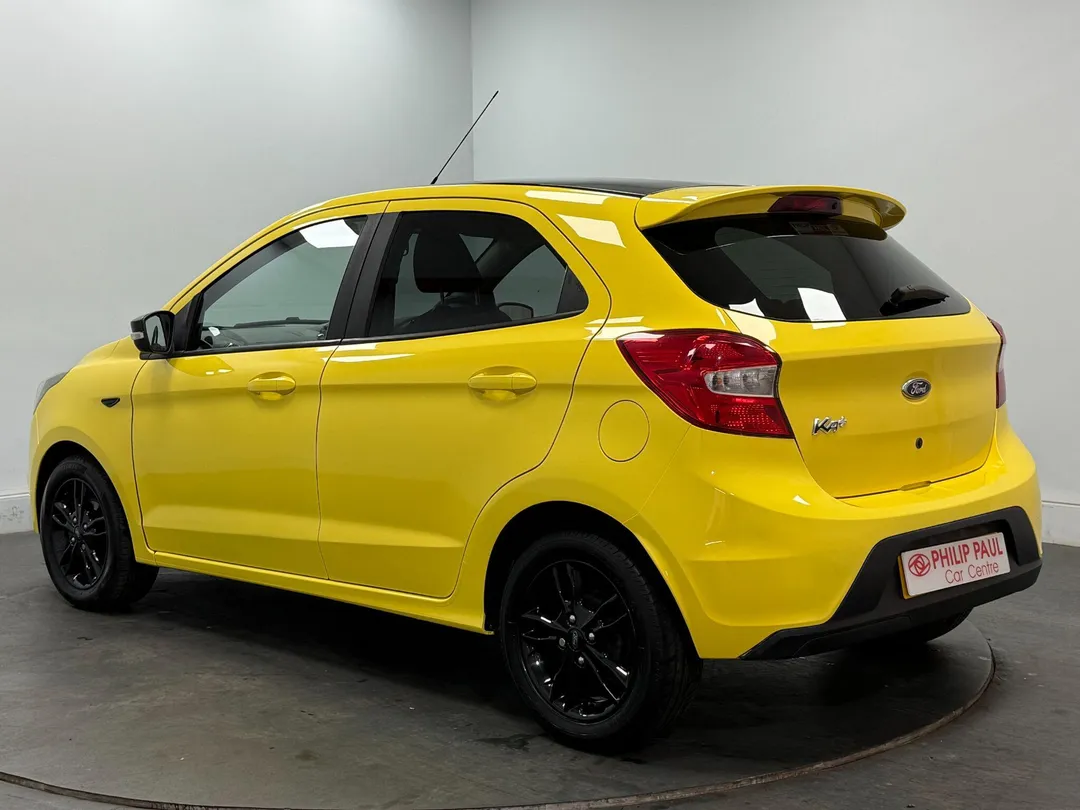 This 2018 Ford Ka+ Ti-VCT Zetec presents a remarkable opportunity with its exceptionally low mileage of just 32,726 miles. This compact and stylish hatchback is powered by an efficient 1.2L petrol engine, meeting Euro 6 emissions standards. Its Zetec trim level boasts a striking appearance with 15 inch black alloy wheels, a black mesh grille featuring a chrome surround, and a large rear spoiler. Further enhancing its distinctive look are the shadow black contrast roof and mirrors, complemented by privacy glass for added refinement.