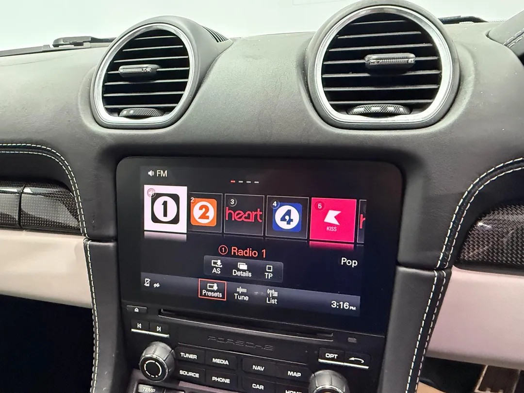 This 2016 Porsche 718 Cayman S T S boasts exceptionally low mileage for its age, having covered just 22063 miles. This striking sports car is powered by a 2.5 litre petrol engine and meets Euro 6 emissions standards. It comes equipped with desirable features such as air conditioning with an integrated active carbon filter, bi-xenon main headlights with integrated LED daytime running lights, and automatic headlight activation including welcome home lighting.
